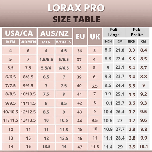 Nehmen sie unsere Größentabelle zur Hilfe um den optimalen Schuh auszuwählen